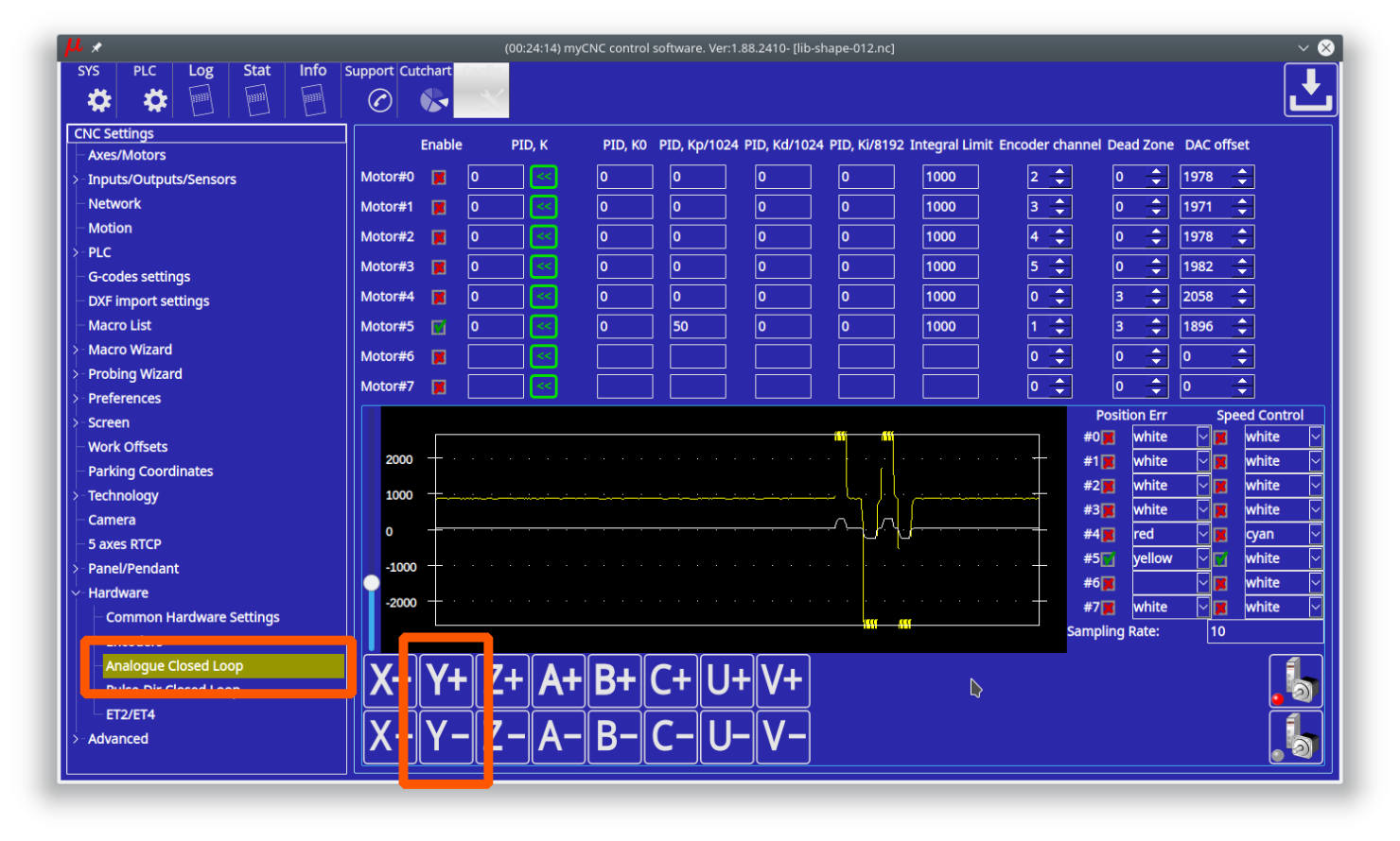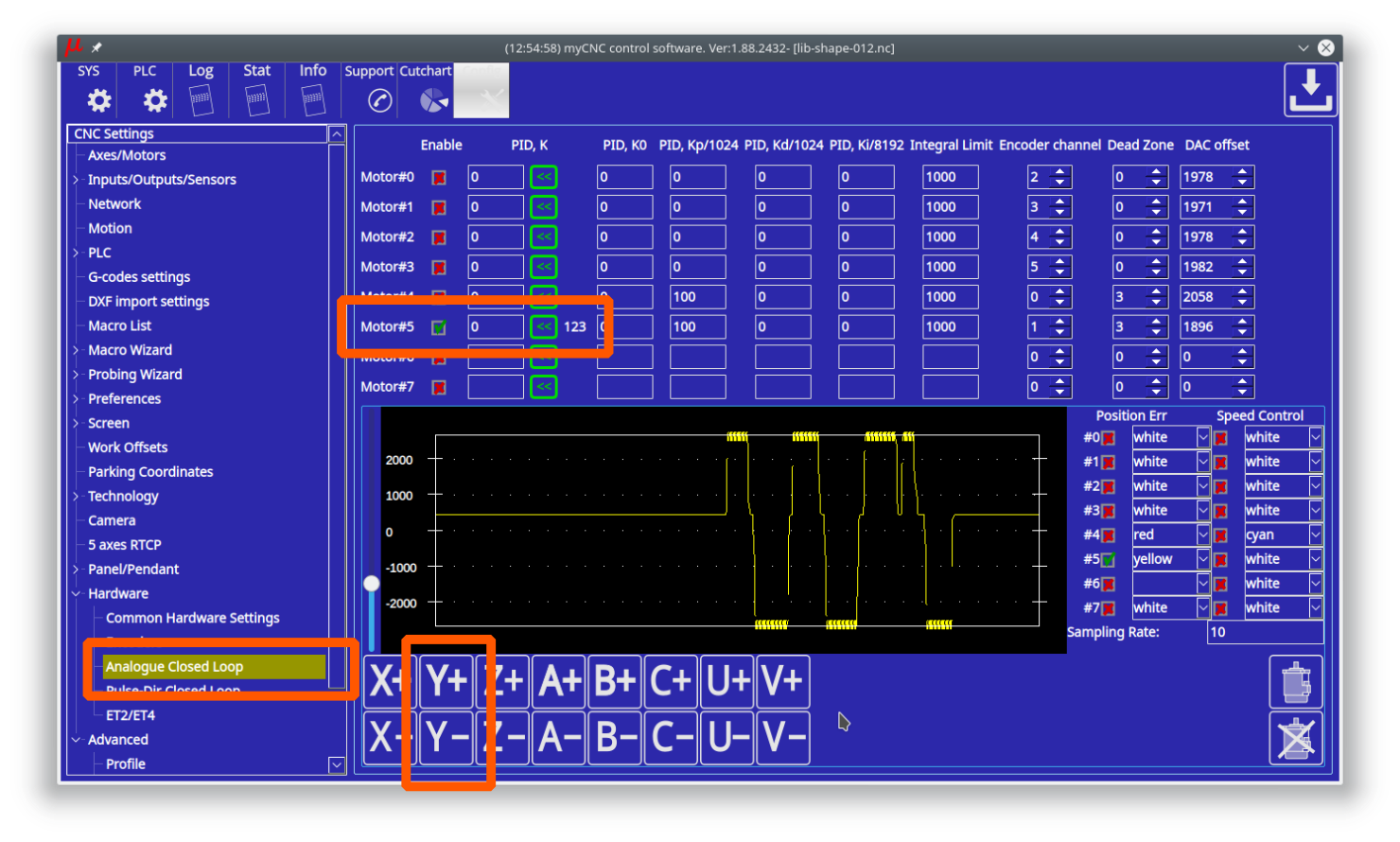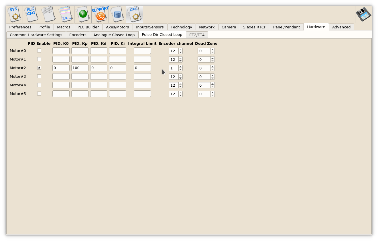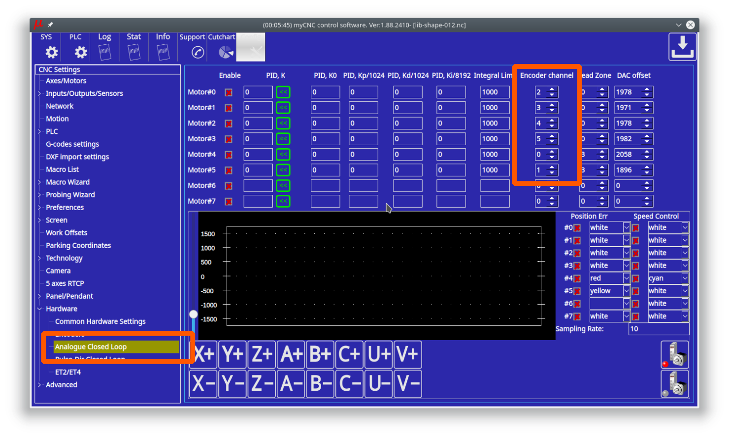 Example: Let's use Motor output #2 (configured as axis X) and Encoder #1 to build closed-loop PID control.