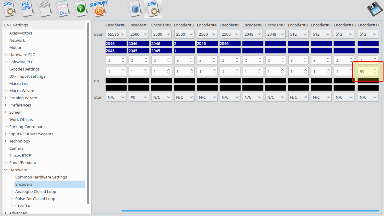Value "99" should be used for DAC test mode ONLY! For working mode any other value from "1" to "90" should be used in "/(2^Div)" line for "Encoder#11".