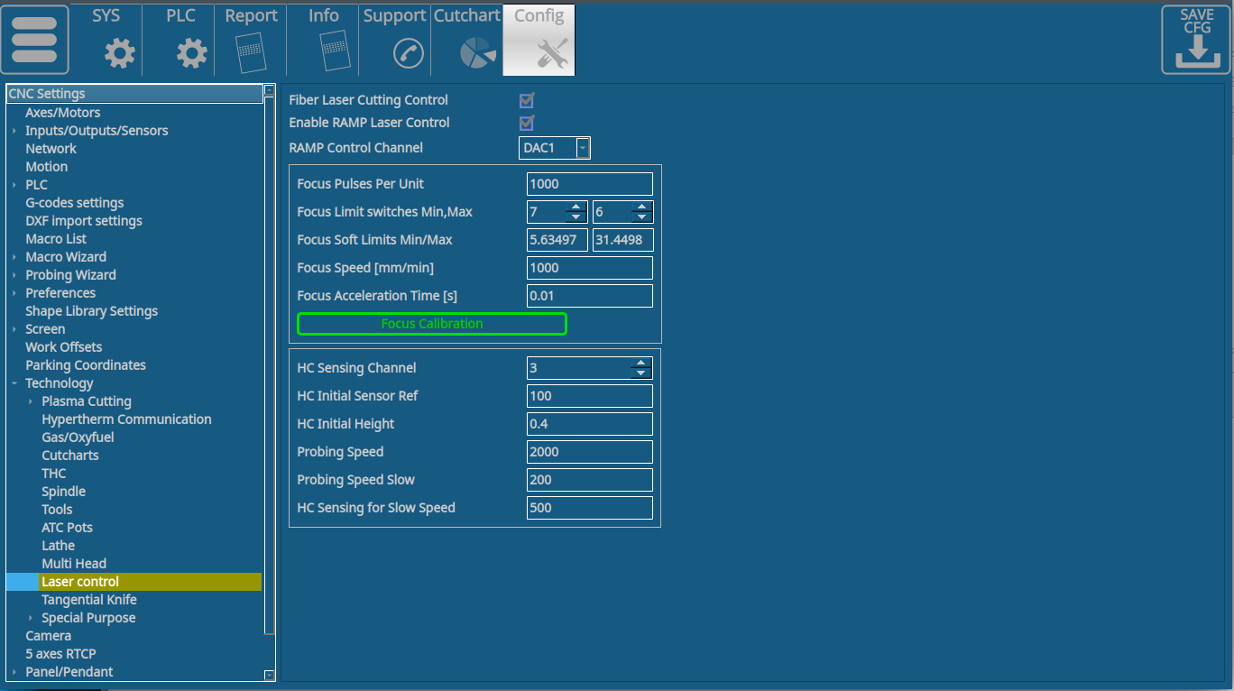 The myCNC Team provides the experimental laser cutting profile Y1366L on request. Note that at the time of writing the manual (November 2021) the profile is currently under development and is not yet intended for final release.