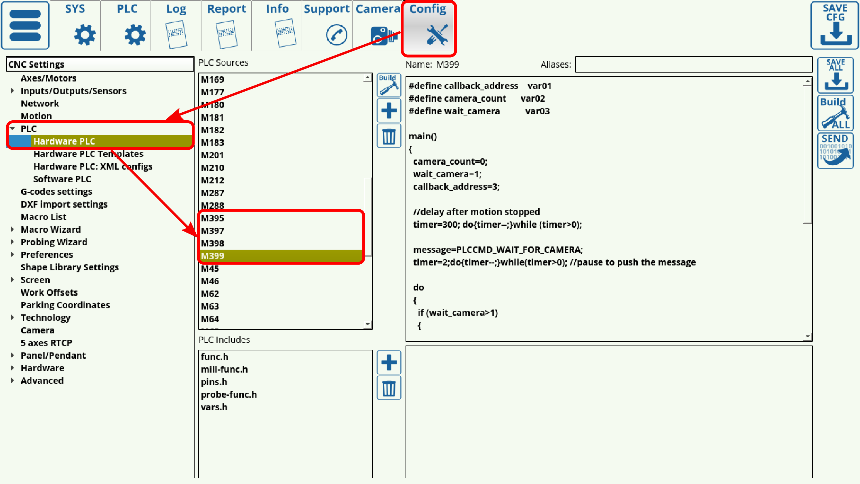 The Vision system is controlled through a series of M-code PLCs which can be found in Settings > Config > PLC > Hardware PLC.