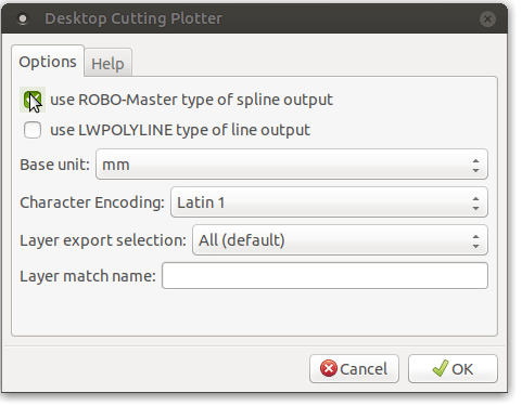3. If using Inkscape, make sure to export using the LWPOLYLINE option (instead of the ROBO-Master type):