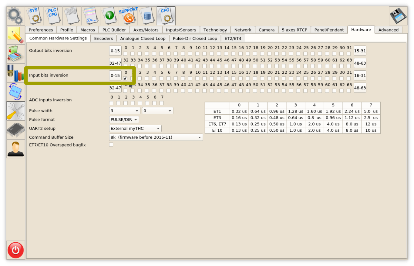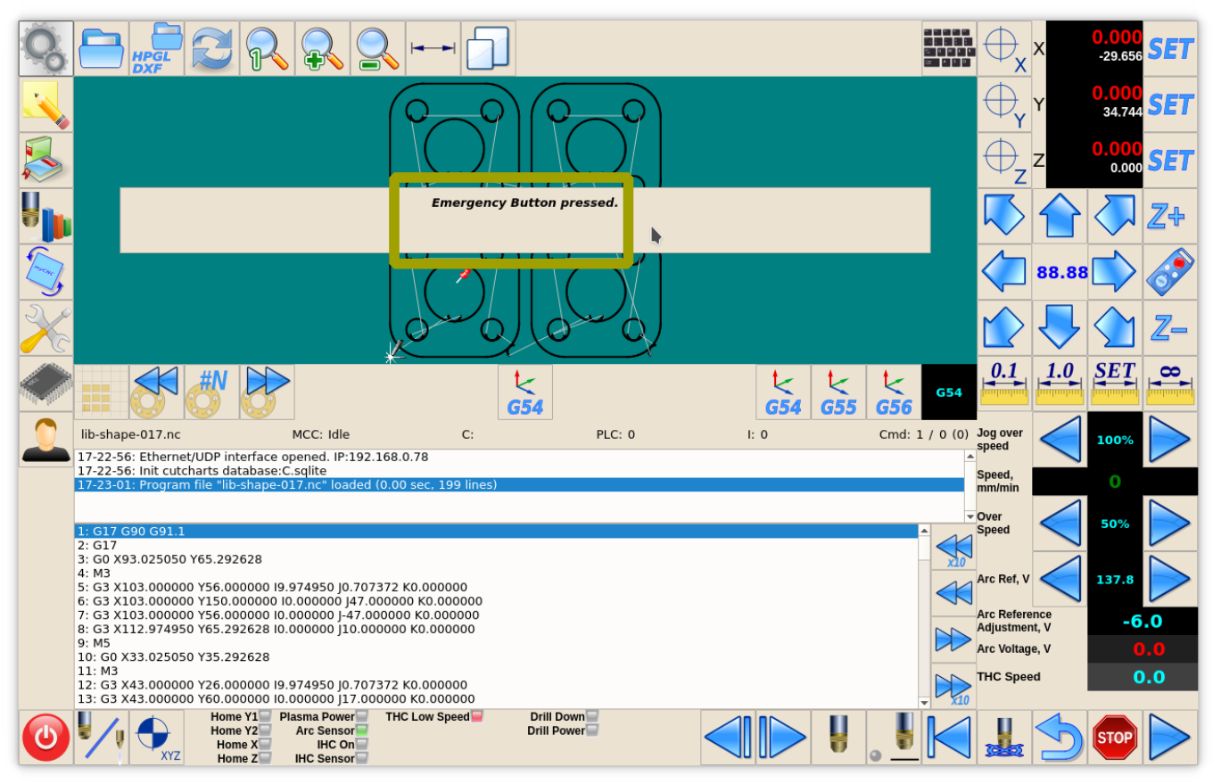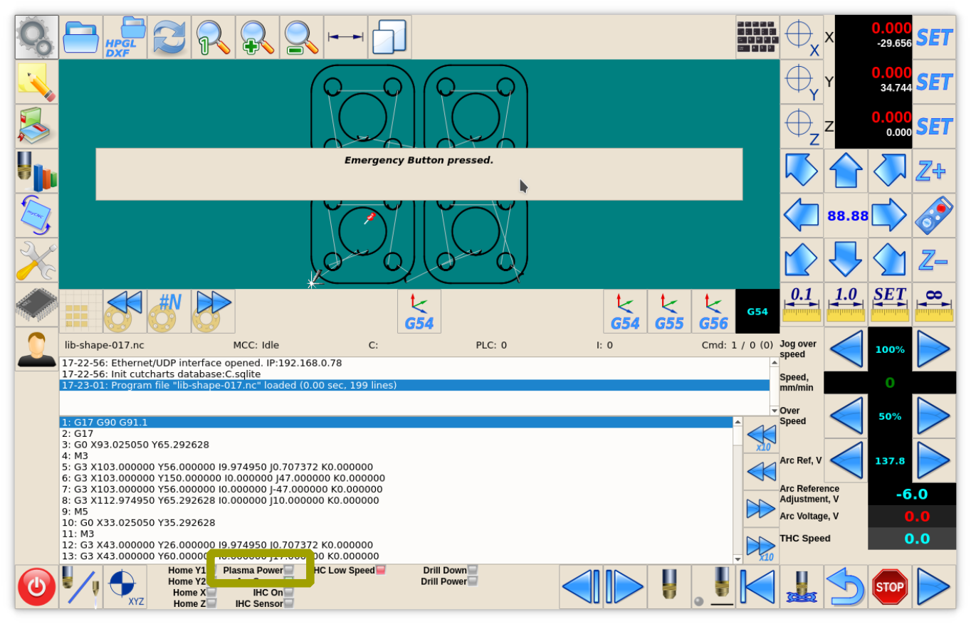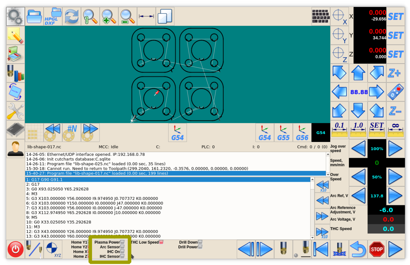 IN0 - Arc ON Sensor from plasma power source. IN1 - Initial Height Control (IHC) Sensor or Probe Sensor - a sensor which triggered when the torch touches the material sheet.