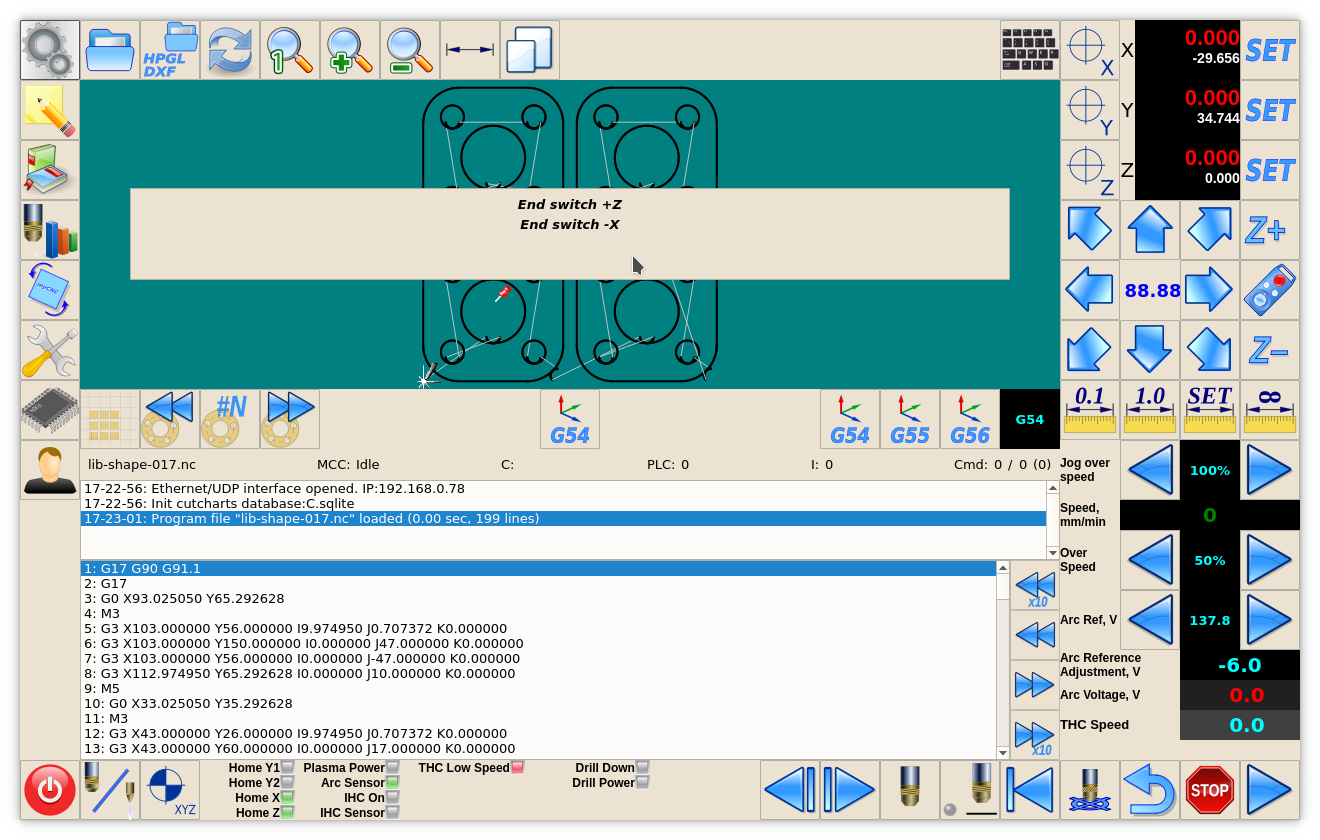 MyCNC Plasma Configuration Example based on profile 1024P-V2