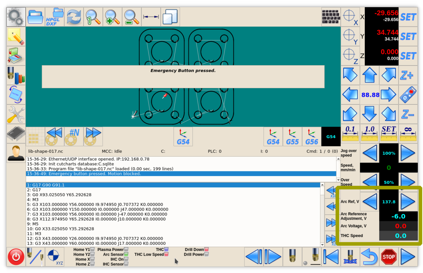 - Arc Voltage - actual measured arc voltage - display item should be attached to ADC channel used as THC Feedback (that's ADC#1 in out example).