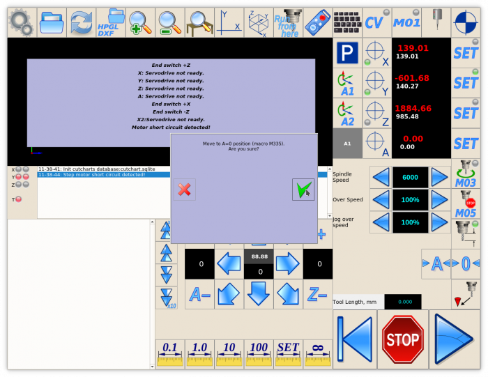 If button OK pressed on Message Box, g-code line M335 (which is macro actually) will be executed to move A axs to zero.