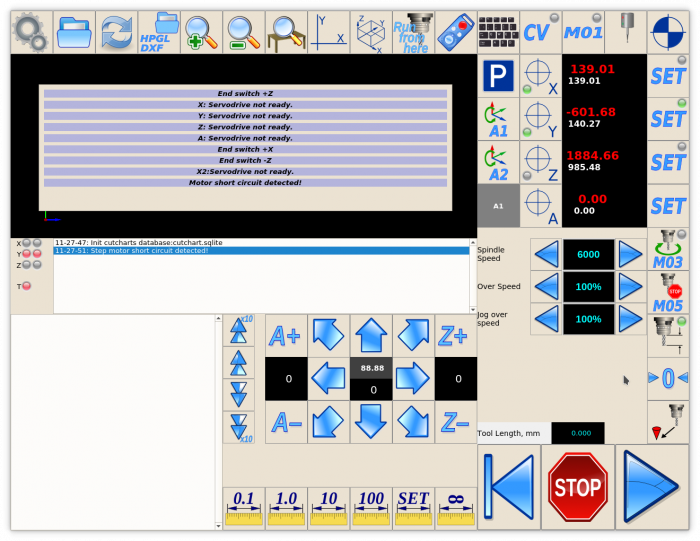 6. Save cnc-screen.xml, restart the software and press the new button with Servo driver. Small grey popup window will be shown on the right side of the button.