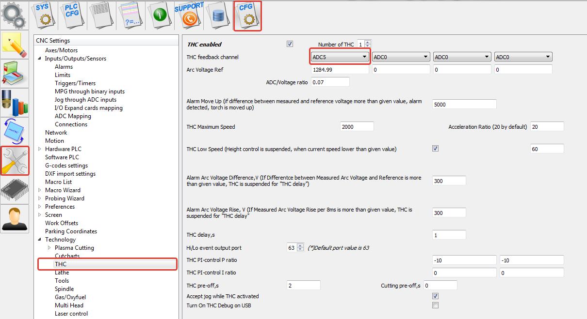 - Next, we will configure the gap stabilization system to work with the ADC5 channel, in the corresponding menu.