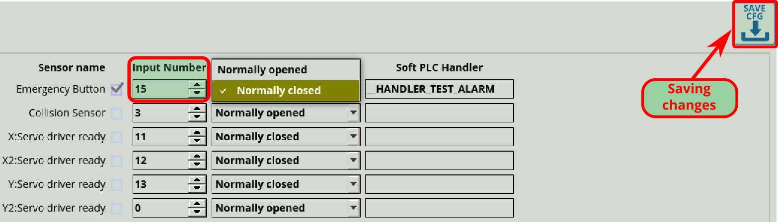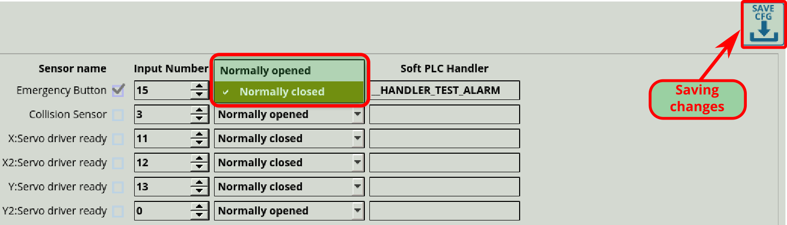 - The type of the sensor is specified in the corresponding field “”. There are two types of input sensors. Normally open - the sensor in the rest position has open contacts and in the course of operation the sensor contacts are closed. Normally closed - the sensor in the rest position has closed contacts and during the operation, the sensor contacts are opened. This “normal” behaviour can be reversed in Settings > Config > Hardware > Common Hardware Settings > Input Bits Inversion: