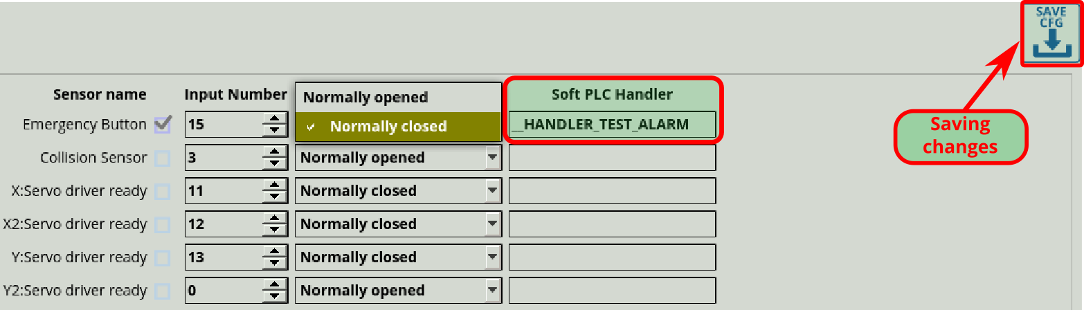 * Additionally, the program can launch a Software PLC command when an alarm is triggered, by specifying a Software PLC handler in this next field: