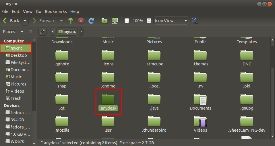 - Locate the .anydesk folder. If the folder is not visible, make sure that the “View → Show Hidden Files” option is enabled