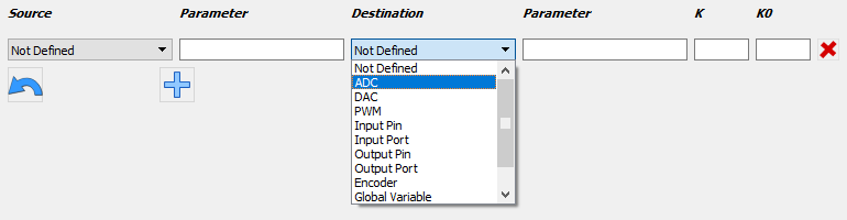 - This function allows you to directly forward the value of the selected register or port to control the selected function, and allows you to redirect the selected register or port to another port and the controller register. For example, controlling the pwm value through the value of the analog input, controlling the value of the global variable via the analog input, controlling the value of the output register through the value of the selected input register. This function allows you to control inputs and outputs without the use of PLC procedures.