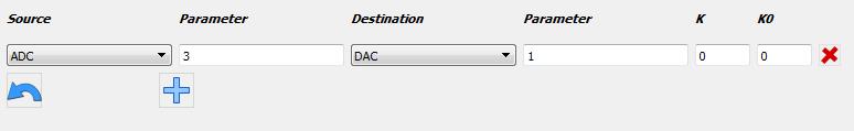 - Simple3. The value of the ADC chanel number 3 changes the value for output DAC chanel 1