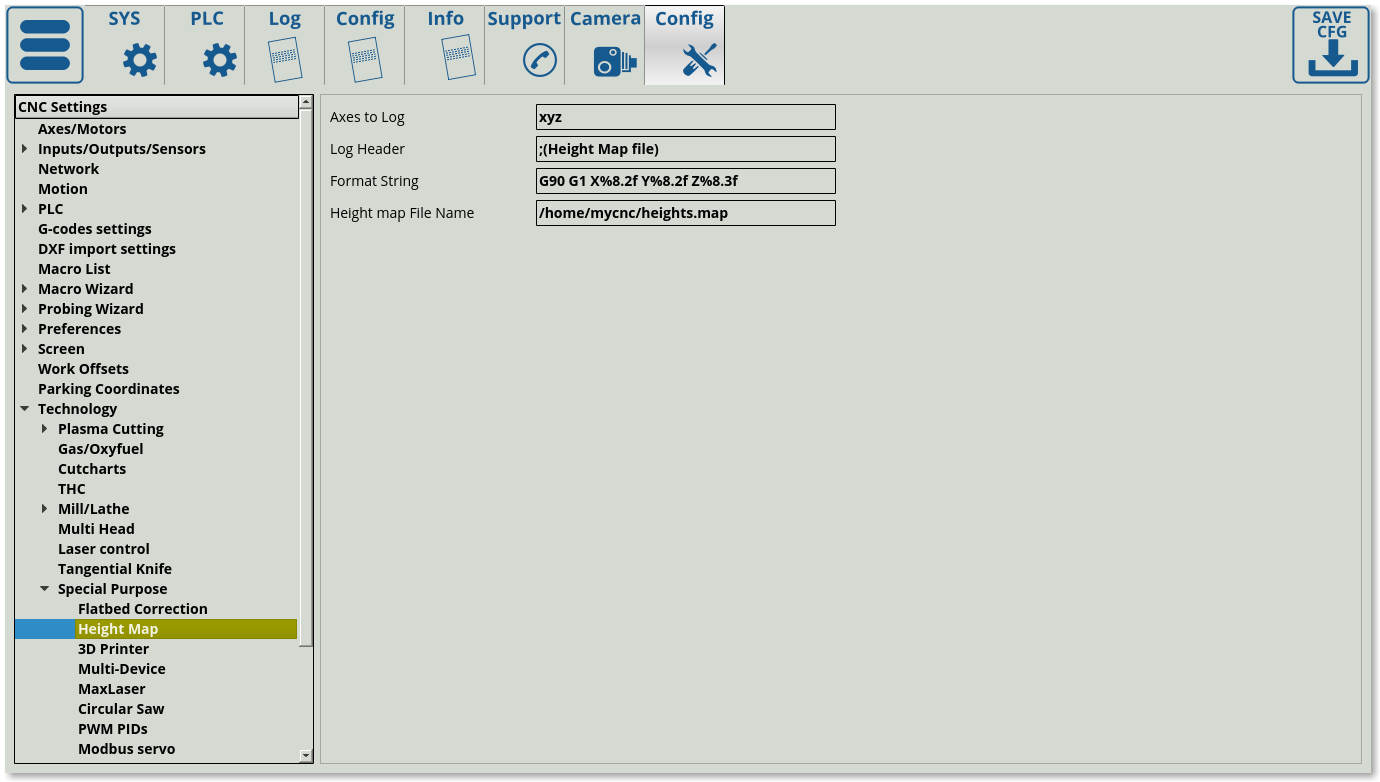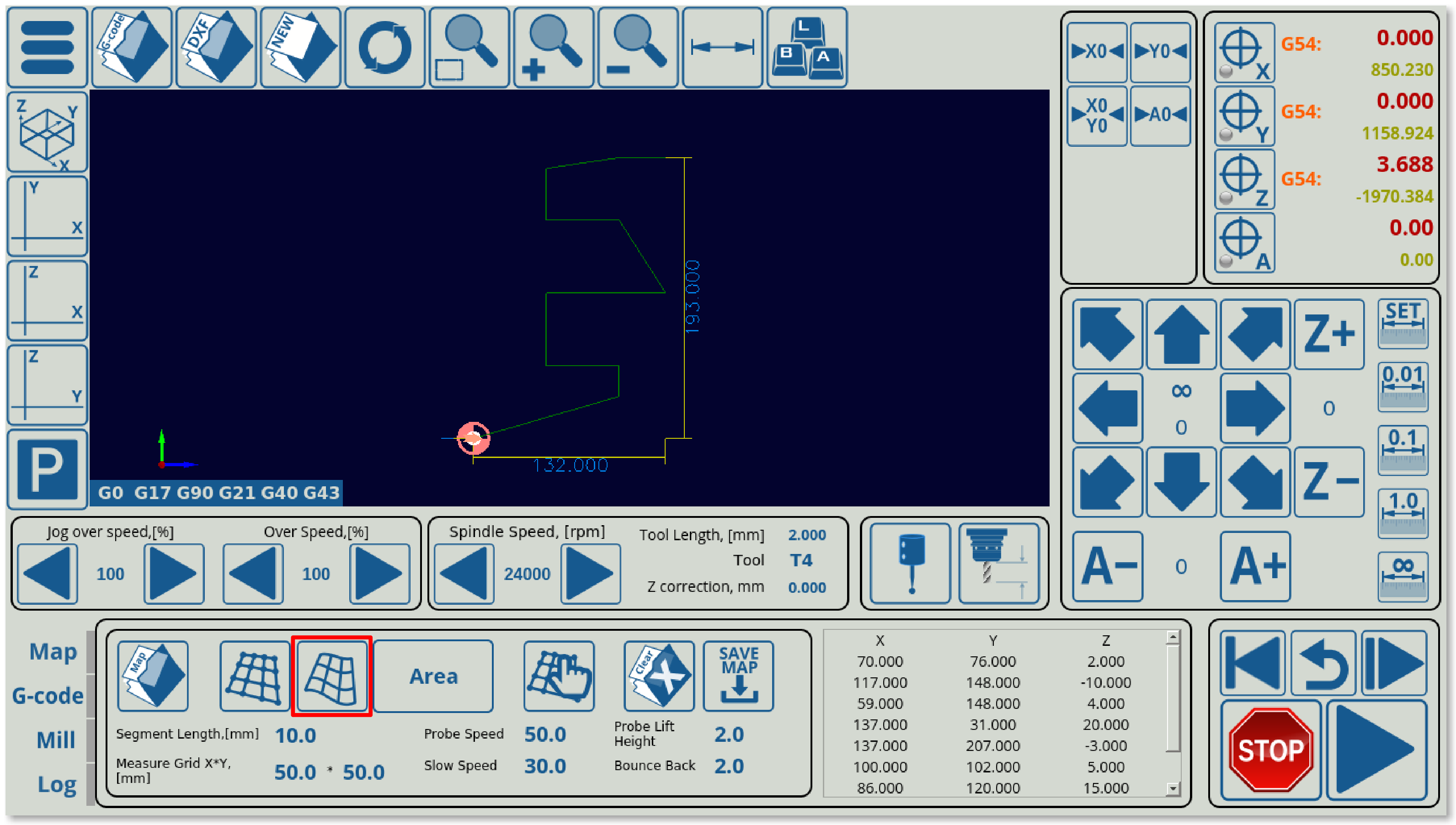 Height mapping allows to correct the G-code program for abnormalities and slight surface variations of the working material by mapping out the height map of the working material prior to beginning the cutting job. This function is extremely useful when dealing with a working surface which might be oriented imperfectly or may have some abnormalities to it, as well as programs which require a high degree of precision.