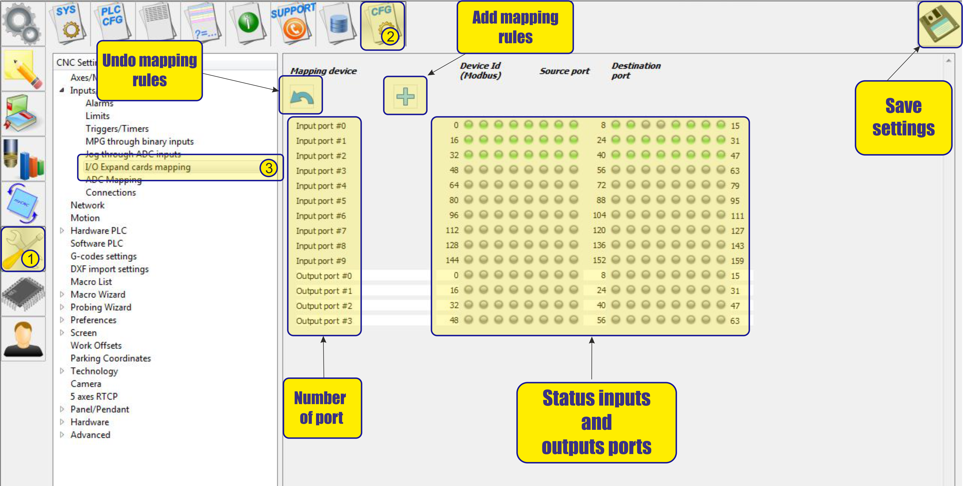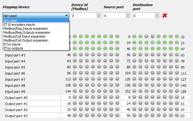 This menu allows you to reassignment the input and output port on the controller, as well as connect the ports of the remote device connected to the modbus as input or output ports of the controller.