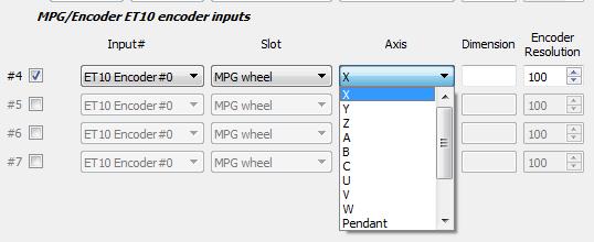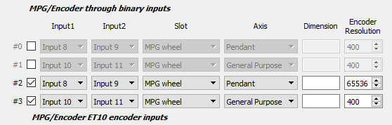 - To activate the MPG or Encoder, it is necessary to check the box next to needed number: