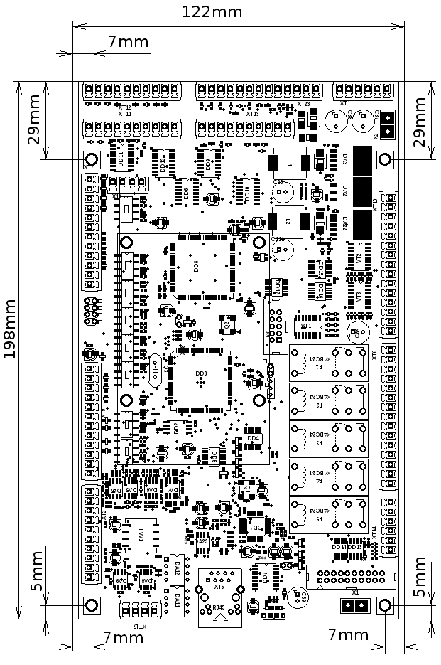 External operator panel connector | up to 25 external keys, up to 2 rotary encodersup to 2 double-axes joysticks OR up to 4 potentiometers (shared with 4x ADC inputs) | |