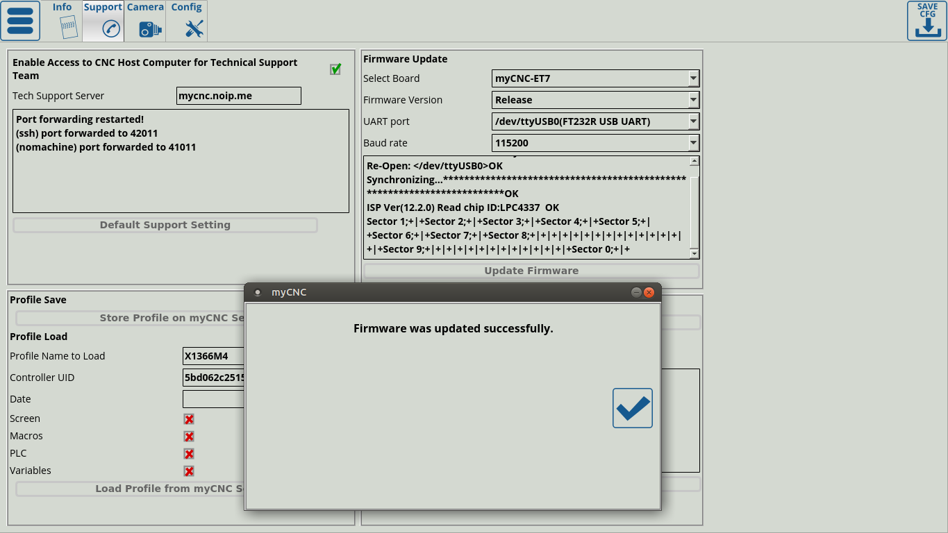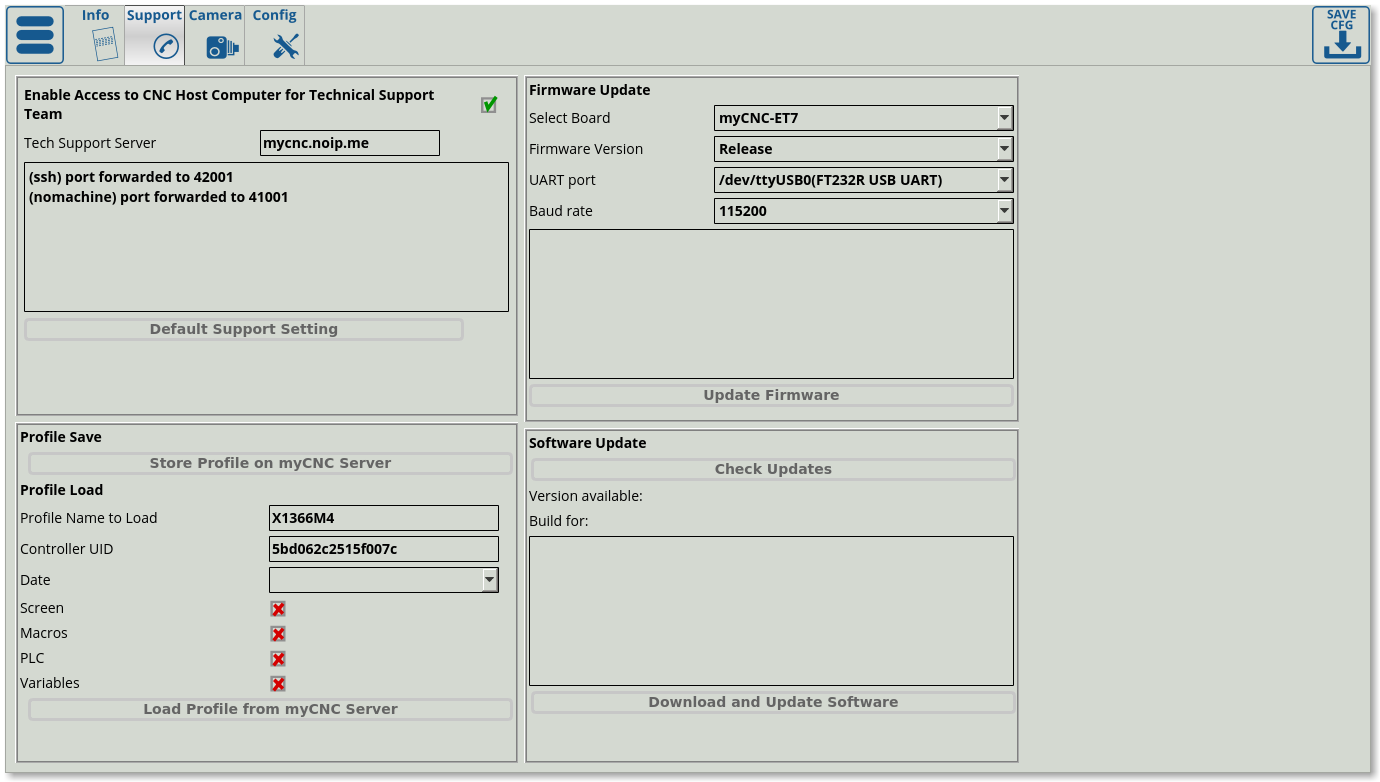 5. Open myCNC software on Host computer (Settings > Support Tab)