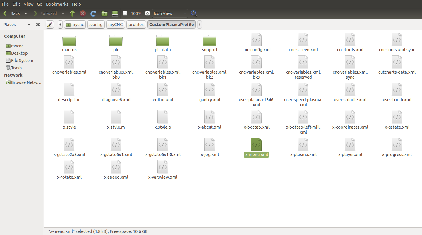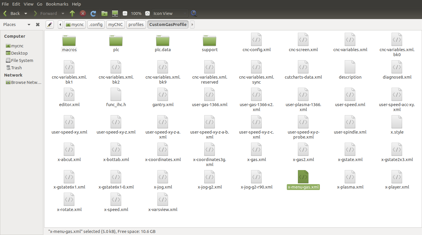 - Head into the folder containing the myCNC profiles. On Ubuntu, it will be home/.config/myCNC/profiles.
