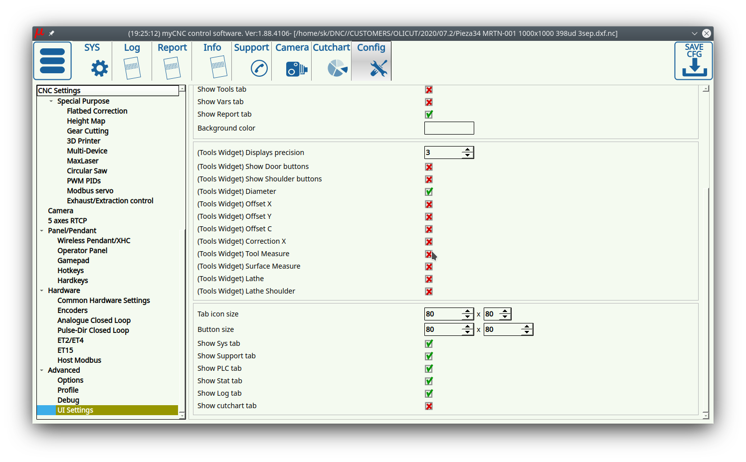 ![]() | Open the myCNC settings |