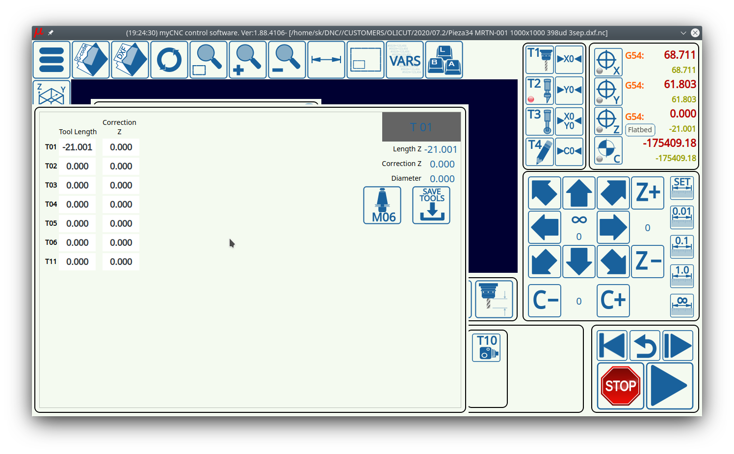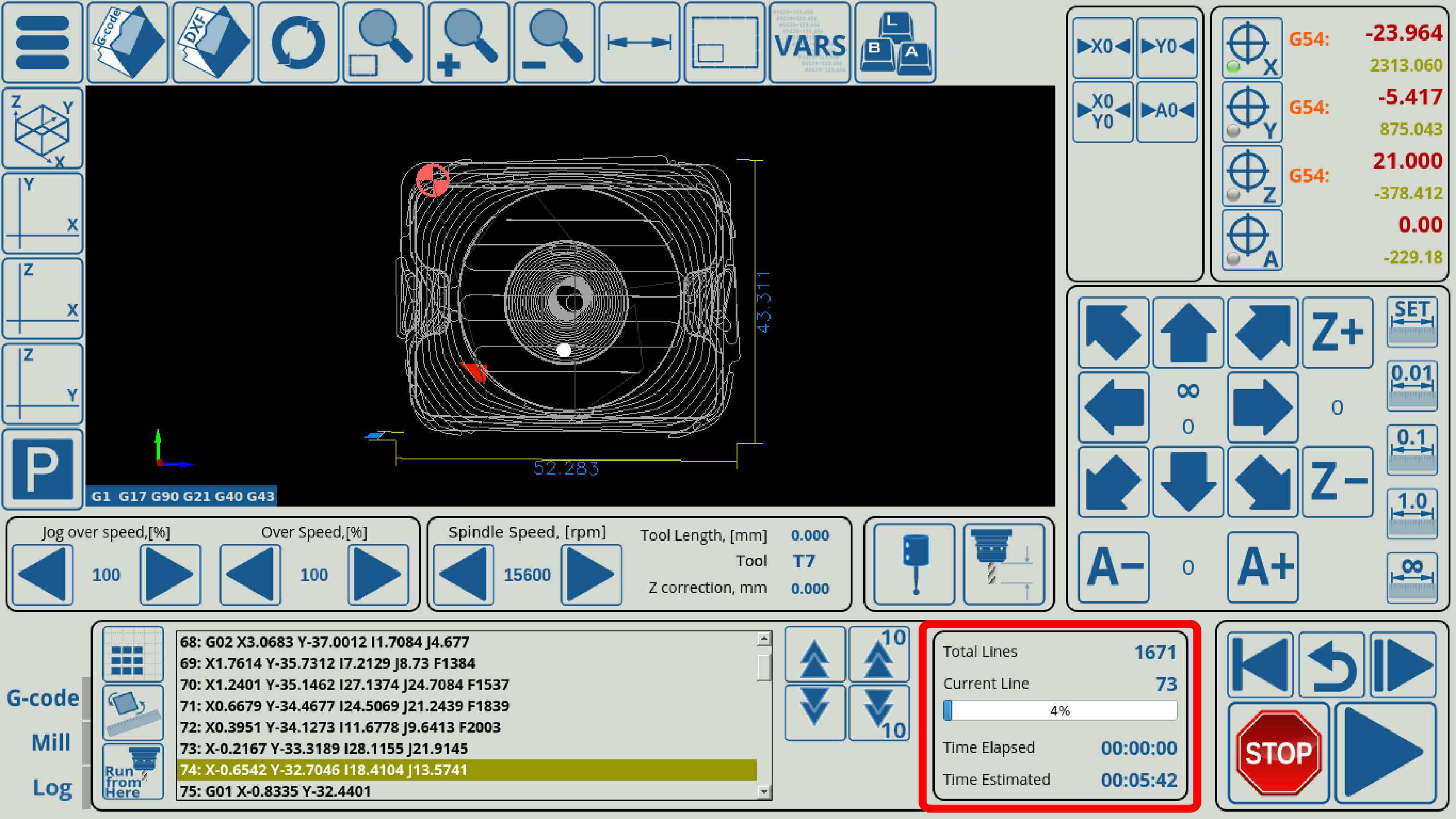Upon opening the G-Code tab and pressing the Run from here button, you are presented with the following screen: