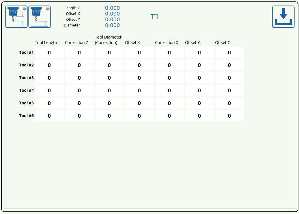 ![]() | Open the Tool Specifications window (see table below) |