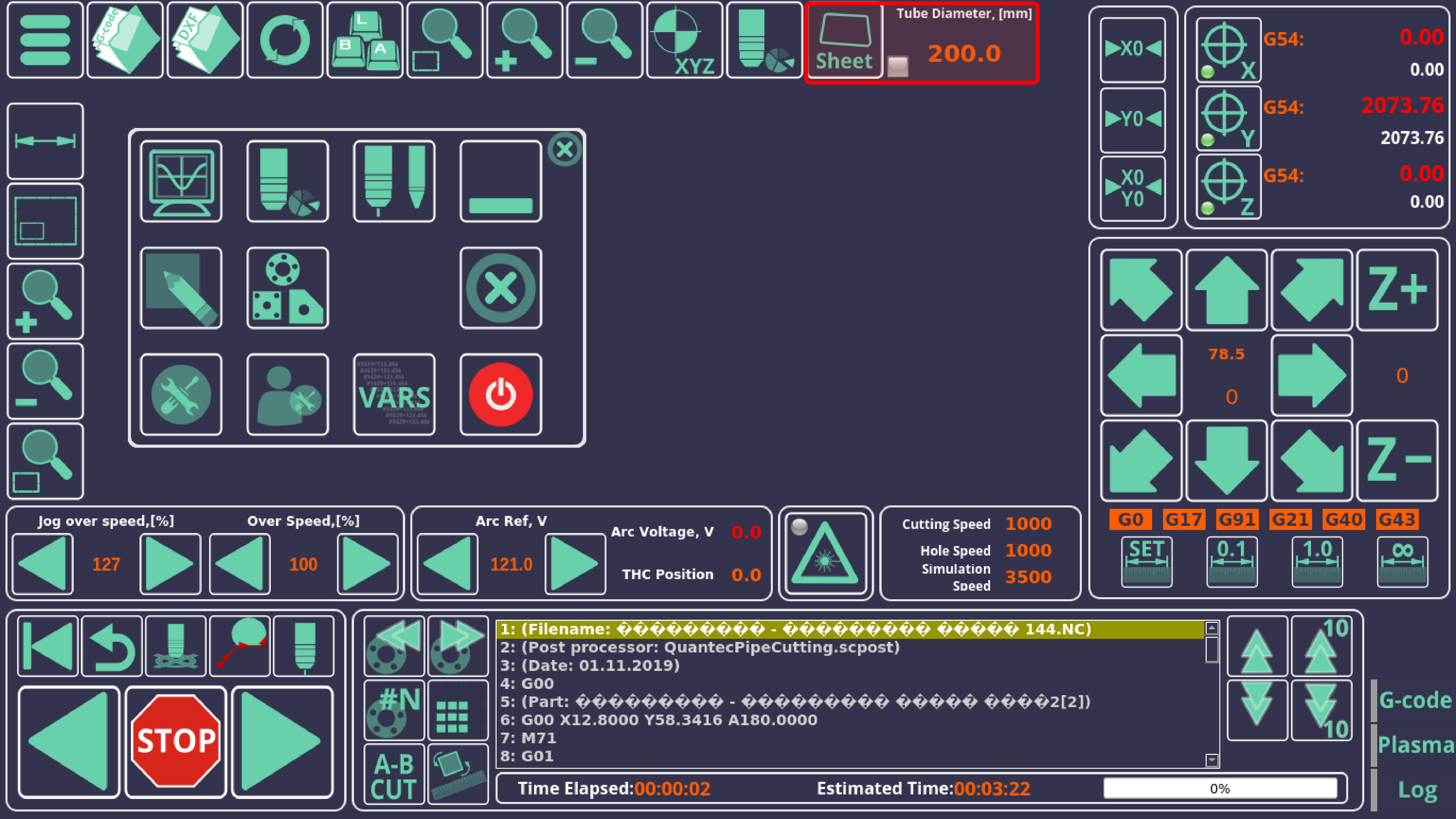 - Settings - shows the loaded settings for currently selected plate, current, speed, cut height and kerf