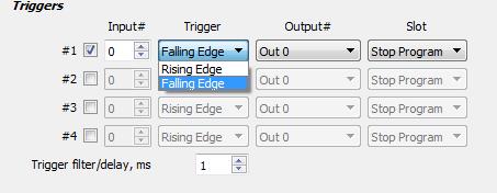 - Faling Edge - Trigger triggering on the falling edge of the impulse, i.e. when passing from the upper state (“1”) to the lower state (“0”).