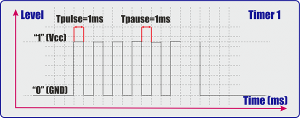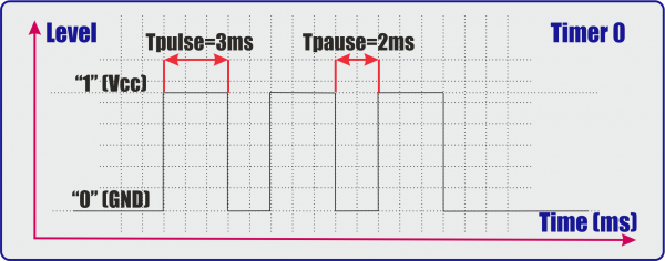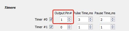 - You must select the duration of the output pulse and the length of the pause. Values are set in ms: