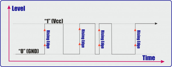- Rising Edge - Trigger triggering on the rising edge of the impulse, i.e. when passing from the lower state (“0”) to the upper state (“1”).
