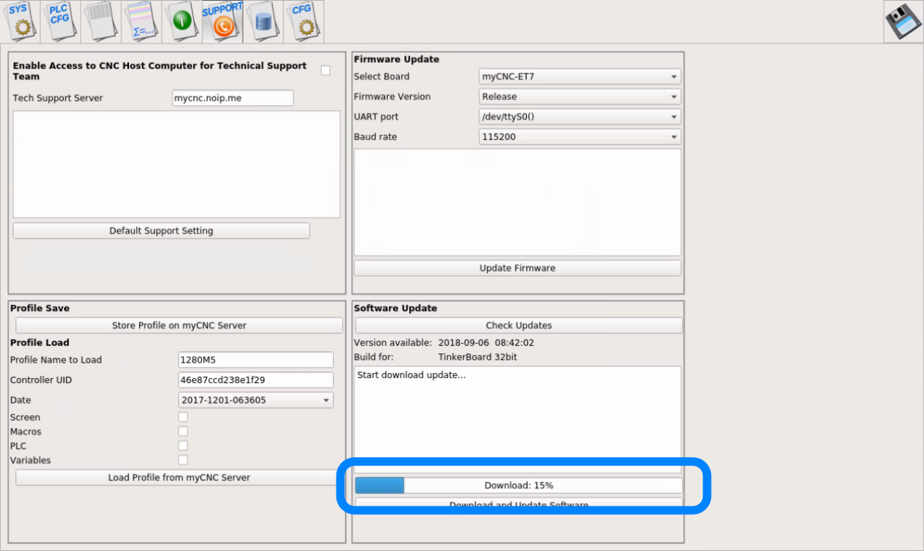 The software can be updated by installing the last version from an installation distributive package over the installed version. All profiles with machine configuration are situated in User folder and will be untouched while installation.