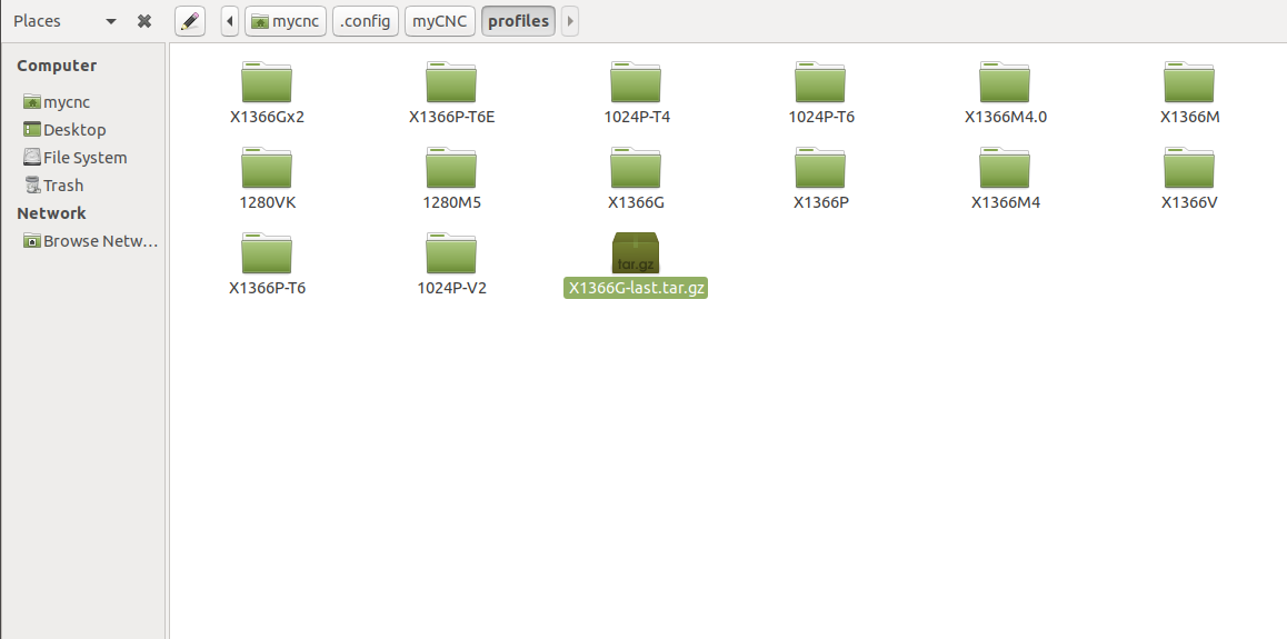 2. Copy the archive file that you have downloaded to home/.config/myCNC/profiles