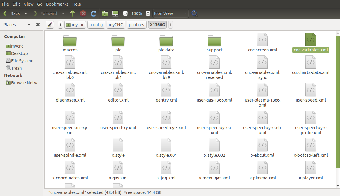 - Variables - Never update the cnc-variables.xml file unless absolutely necessary since it contains all your machine settings like “pulse per mm”, motor outputs configuration, input-output assignments etc.