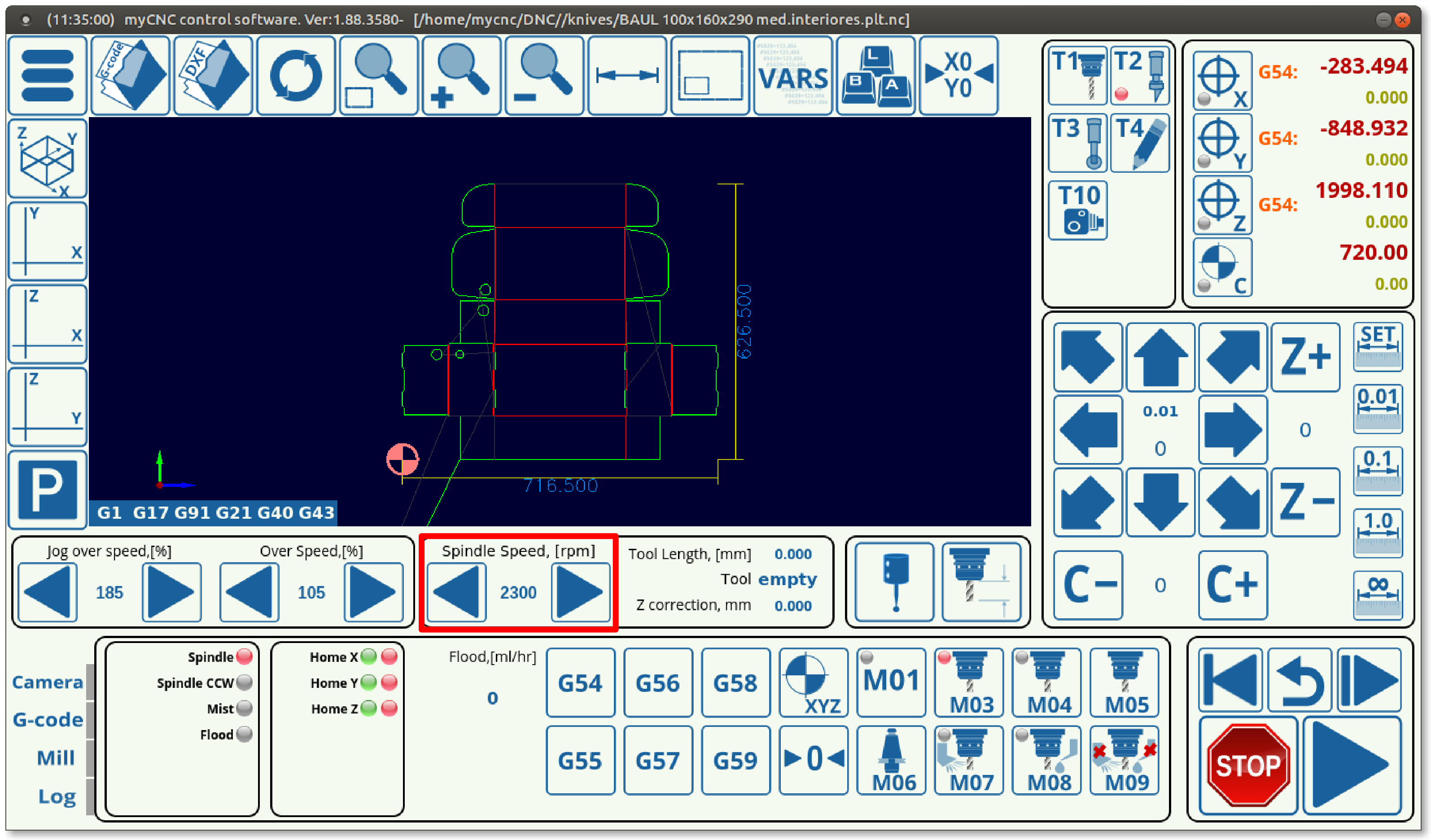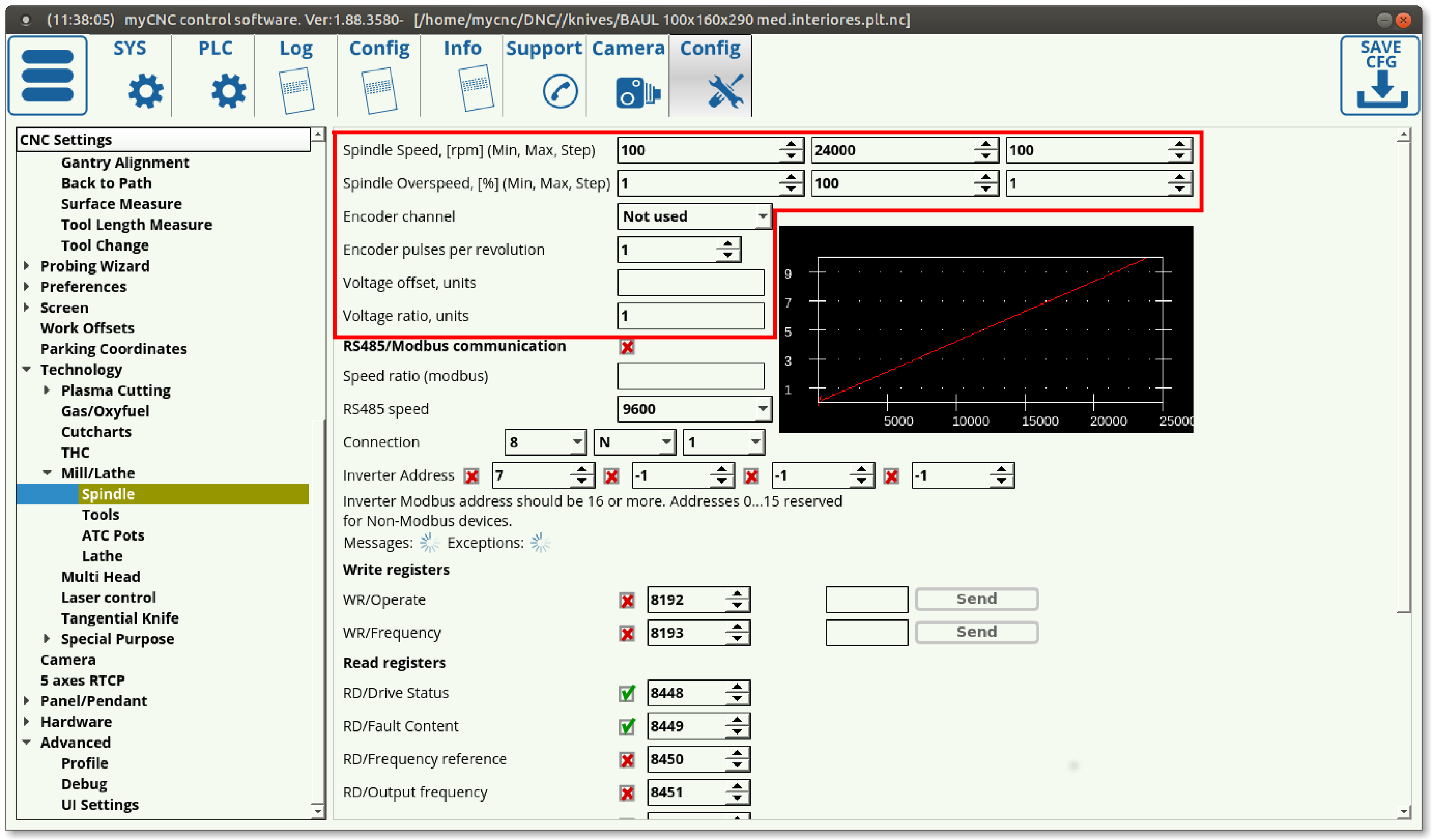 The eparam value here is taken from the spindle speed indicator on the main screen of the myCNC X1366 series profiles: