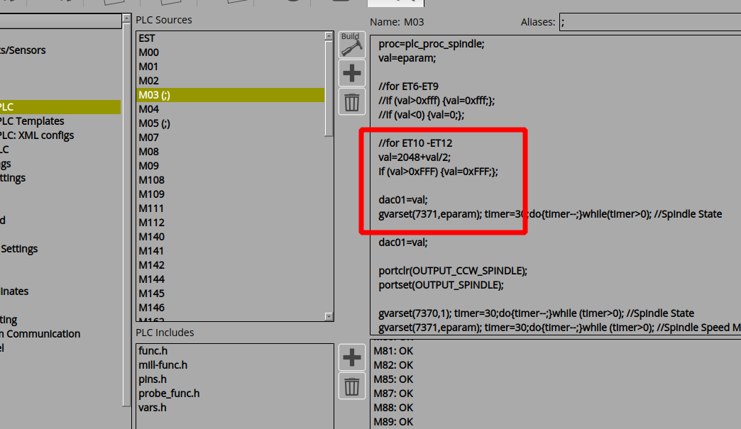 Another examples with +\-10V DAC programming can be found here - M03.plc, SPN.plc