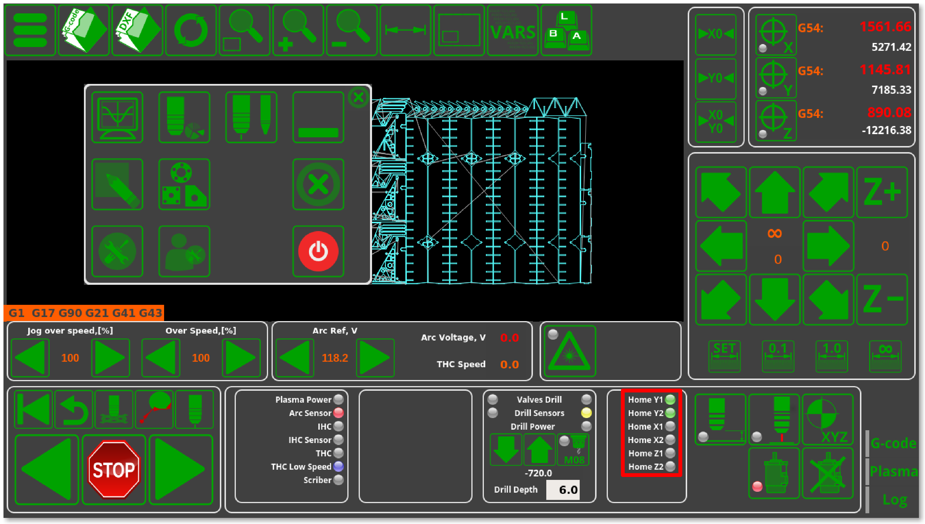 - После перекомпиляции PLC вы можете проверить работоспособность датчиков во вкладке «Плазма» на главном экране программного обеспечения.