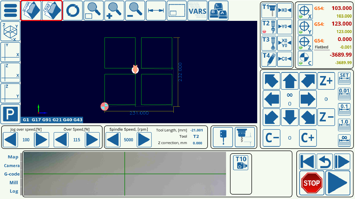После того, как вы настроили список папок, к которым вы хотели бы иметь доступ, вы можете открывать файлы с помощью кнопок Open G-code и Open DXF на главном экране программы: