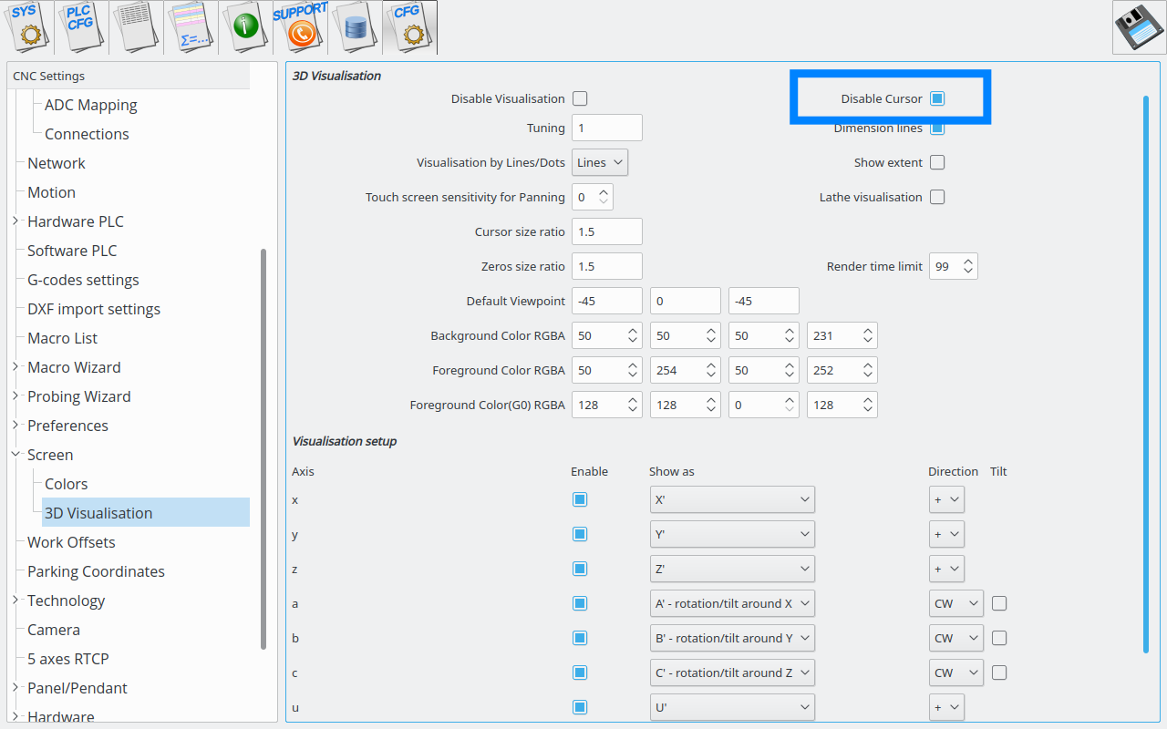 Для того, чтобы выяснить причину возникновения высокой загрузки системы, мы добавили опцию “Выключить курсор” (“Disable Cursor”) в окне настроек 3D визуализации.