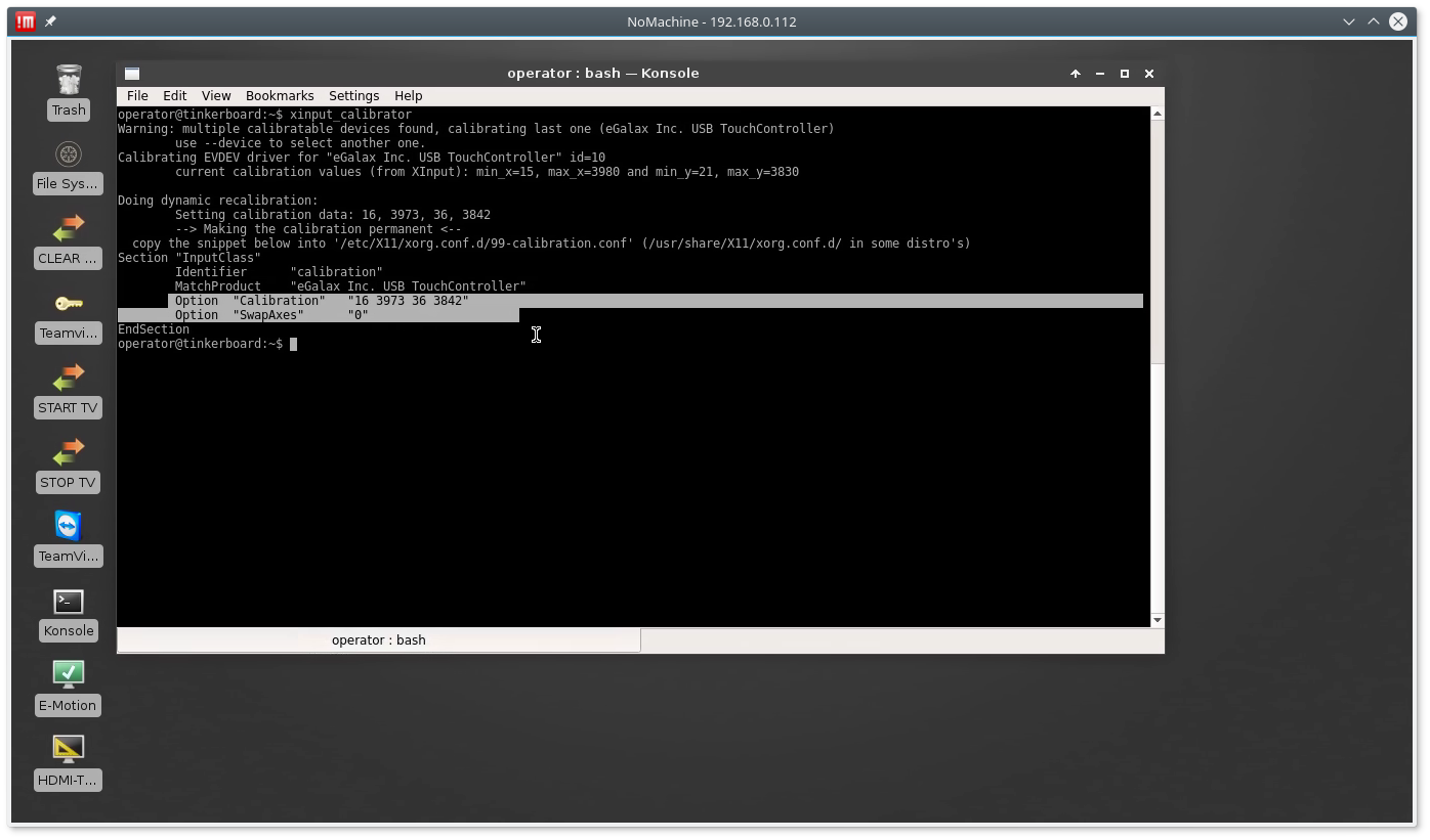 Touch Screen calibration for TinkerBoard, XFCE Window manager