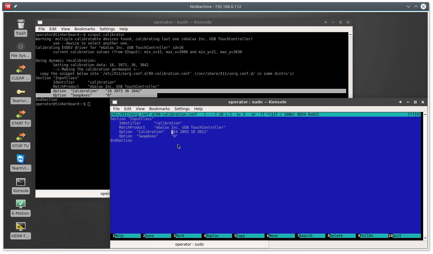 2. Run xinput_calibrator in the konsole. Type in the konsole