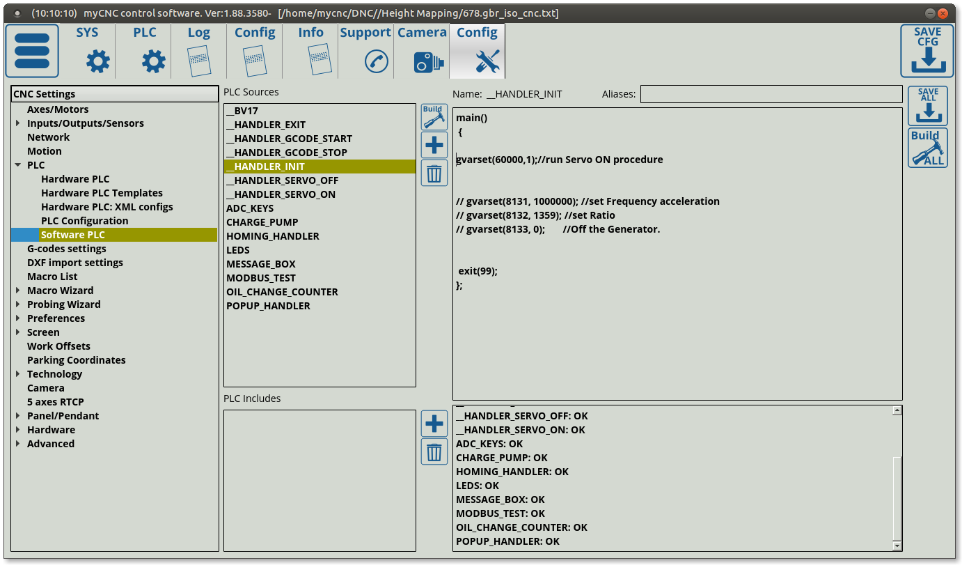 Основная информация: Необходимо иметь следующие 4 команды в Software PLC: __HANDLER_INIT для запуска серво при включении ПО, __HANDLER_EXIT для выключения сервопривода при закрытии ПО, __HANDLER_SERVO_ON, для ручного включения, и __HANDLER_SERVO_OFF, для ручного отключения серво. Данные команды используют глобальные переменные №60000 и №60001.