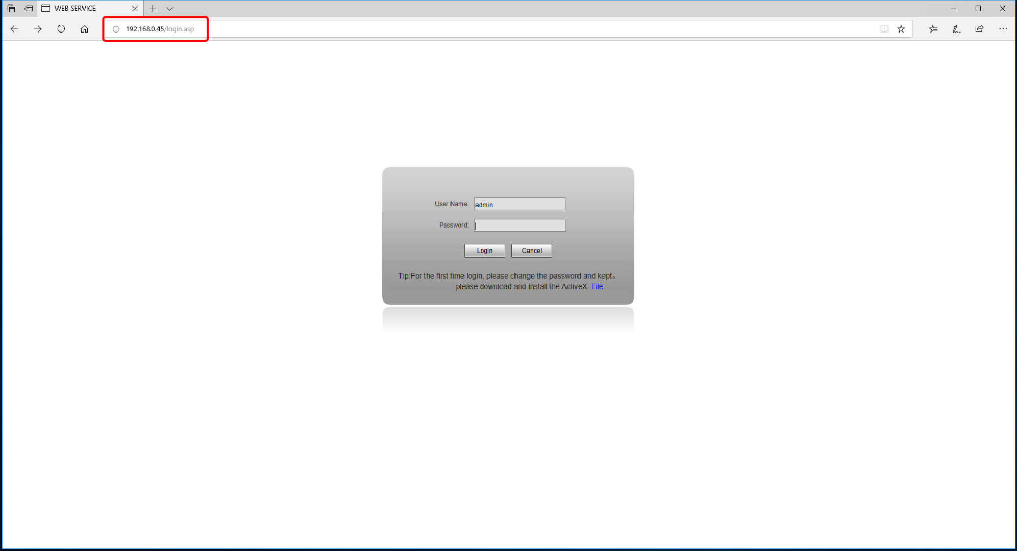 - After the installation has completed, type in the camera username and password, and click 'Login'. By default, both the username and the password are admin: