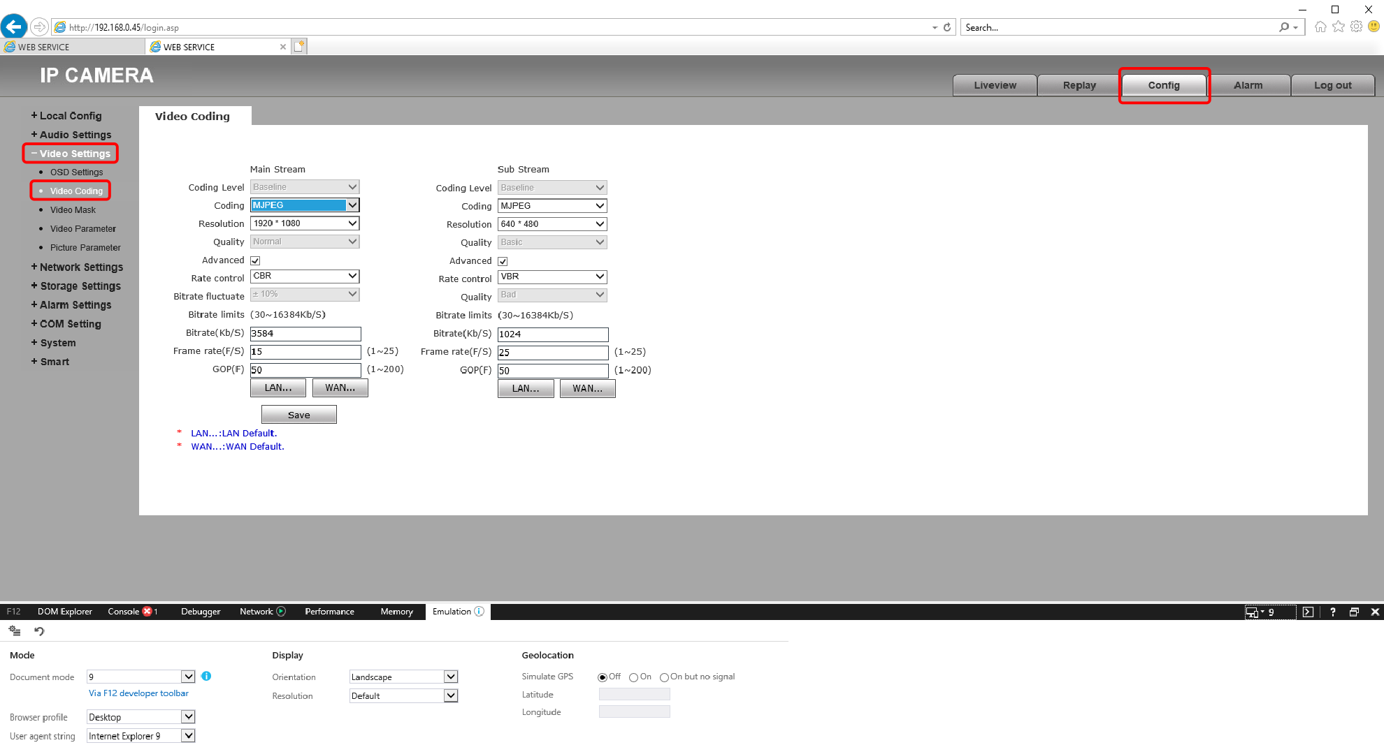 - In the Config tab, navigate to Video Settings > Video Coding: